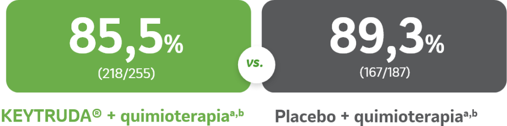 KEYTRUDA® + quimioterapiaa,b (n=255) vs. placebo + quimioterapiaa,b (n=187)1