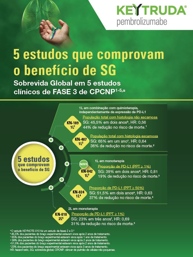 Confira 5 Estudos clínico de fase 3 que demonstraram benefício de Sobrevida Global em Câncer de Pulmão Não Pequenas Células (CPNPC)