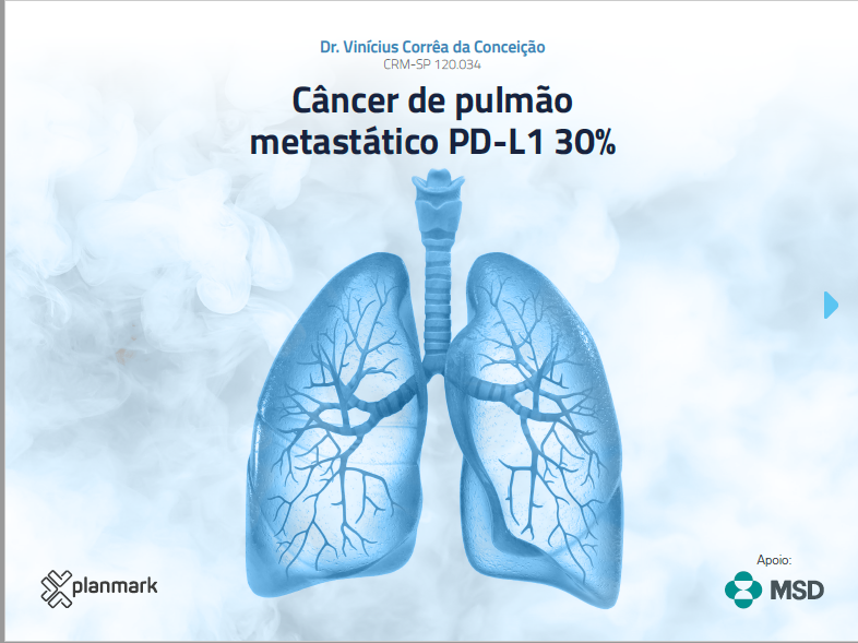Dr. Vinícius Correa discute caso clínico de paciente com Câncer de Pulmão Não Pequenas Células, escamoso e metastático com expressão de PD-L1 de 30%, que foi tratado com imunoterapia em monoterapia